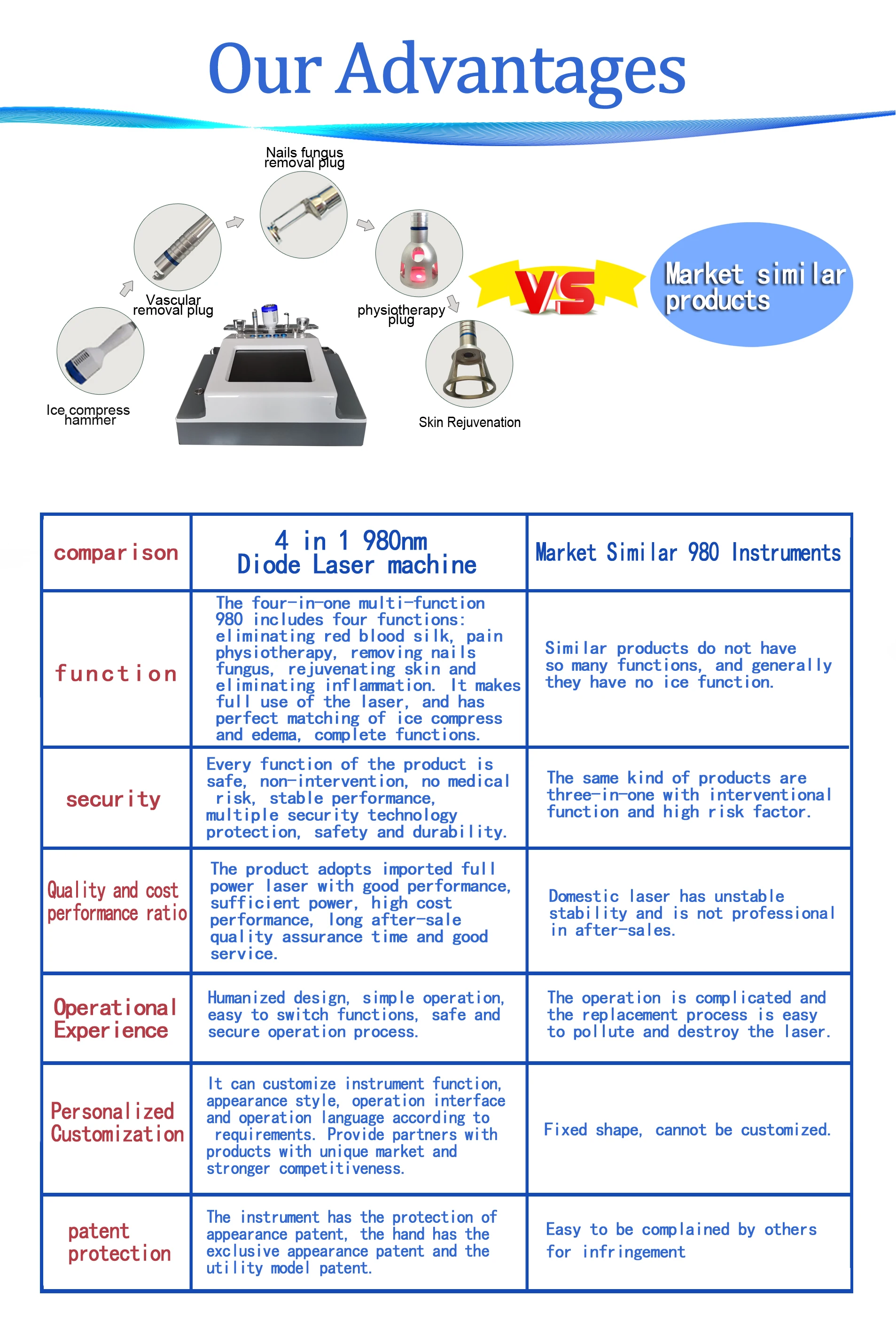 A1302B Multifunctional Beauty Machine 4 in 1 980 nm Diode Laser Vascular Removal Machine/ 980nm Laser Spider Vein