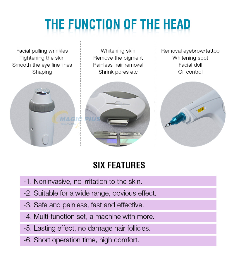 5. 5 advanced technologies (OPT & IPL & RF& Bipolar RF& Nd Yag Laser) and 2 operating screens in one machine,easy operation: