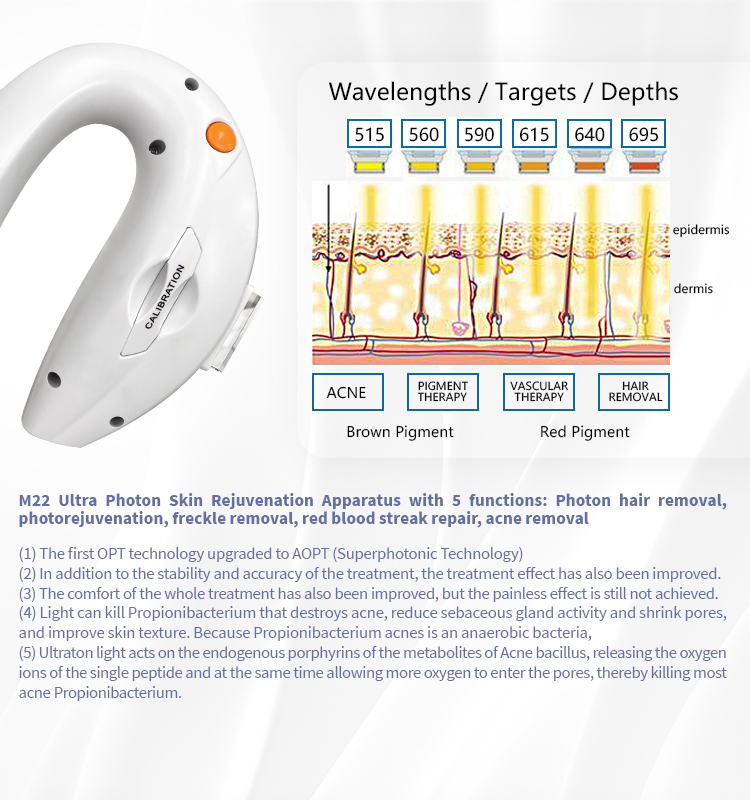 | Function | Hair Removal, Blood Vessels Removal, Pigment Removal, Skin Whitening, Skin Rejuvenation, Wrinkle Remover, Acne Treatment | |||
