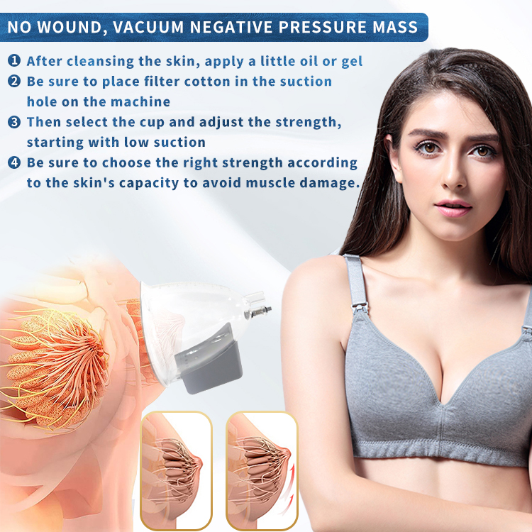 2. Breast hip lift cup, through the strong negative pressure suction, at the same time spread with vibration massage, can